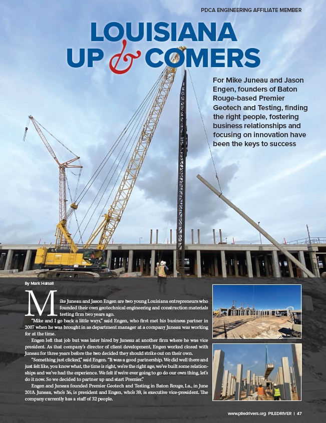 Engen and Juneau founded Premier Geotech and Testing in Baton Rouge, La., in June